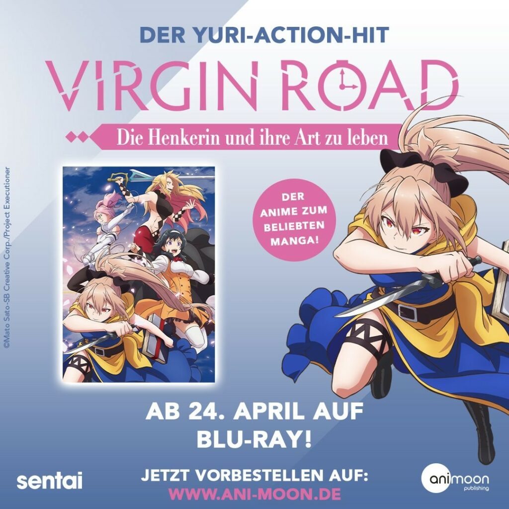 Wie der Anime-Publisher AniMoon Publishing pünktlich zu Heiligabend bekannt gab, hat man sich die Lizenz zu „Virgin Road: Die Henkerin und ihre Art zu leben“ gesichert und wird diese auf Disc veröffentlichen.