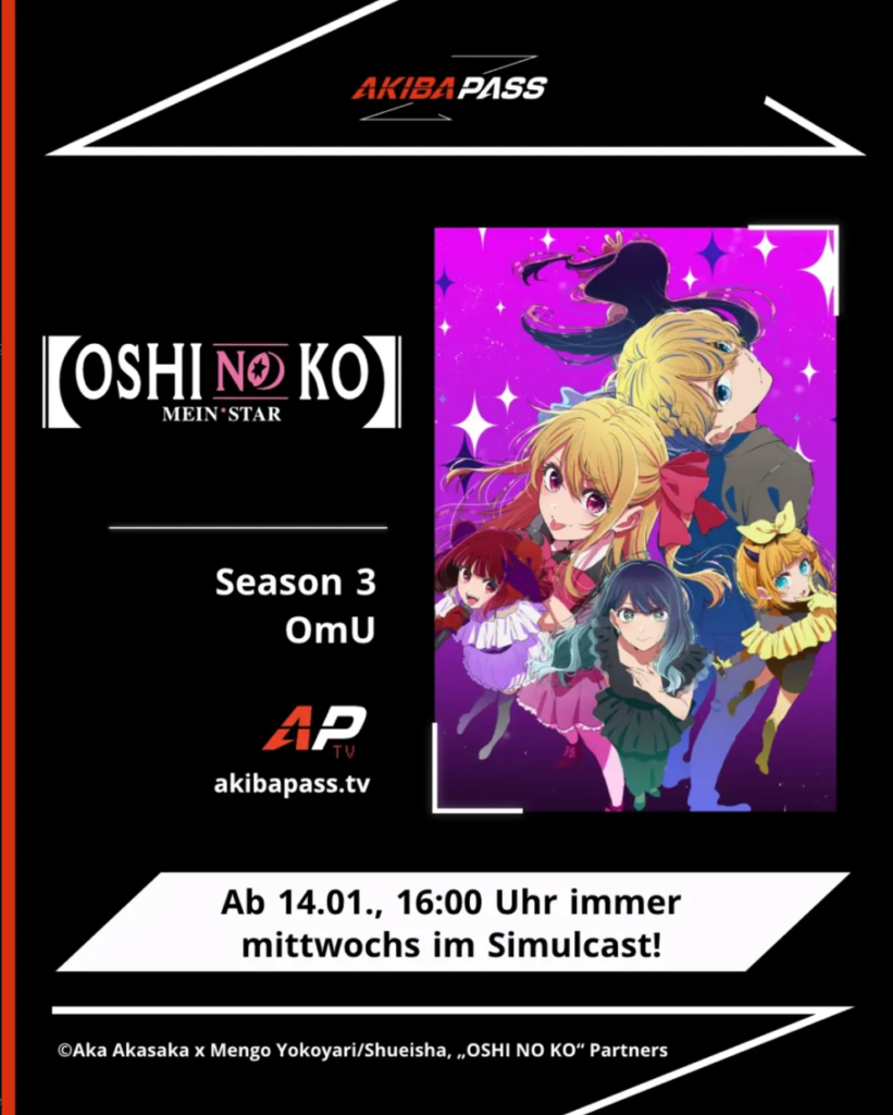 Wie der Publisher peppermint anime bekannt gab, hat man sich die Lizenz zur dritten Staffel von „Oshi no Ko“ gesichert hat und wird diese im Simulcast zeigen.