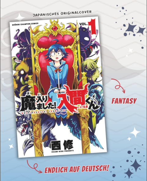 Der Bindlacher Verlag Loewe Manga konnte sich die Lizenz zu „Willkommen in der Dämonenschule, Iruma-Kun!“ (jap.: „Mairimashita! Iruma-kun“) sichern und wird diese hierzulande veröffentlichen.